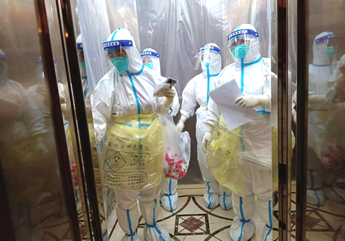 面對(duì)始料未及的新冠疫情再次來襲,職工醫(yī)院全體女醫(yī)護(hù)人員不再慌張,而是緊張有序的進(jìn)行著每一項(xiàng)工作。她們細(xì)心的為承接的LV隔離酒店隔離區(qū)進(jìn)行嚴(yán)密消殺,每日從專用步行梯人工運(yùn)送垃圾,為隔離人員按時(shí)進(jìn)行核酸檢測(cè)、送水送飯。進(jìn)入隔離區(qū)最快也要持續(xù)4、5個(gè)小時(shí),一套流程下來整個(gè)防護(hù)服都濕透了,這些可愛的天使們還打趣道“又洗了個(gè)天然沐浴”!